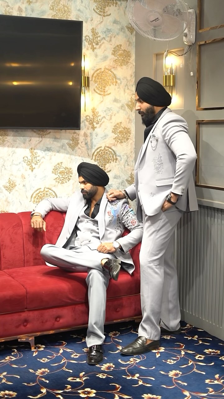 Two stylish sardars, one dapper look! Rocking this light grey suit by a brilliant @baljeetdesigns Class, elegance, and a touch of tradition – all in one frame! ✨🔥 #SardarSwag #ClassicInGrey #DapperLook” . #SardarSwag #ElegantStyle #ClassicInGrey #DapperLook #MensFashion #FashionGoals #SharpDressedMen #GreySuitVibes #PunjabiStyle #StyleStatemen . Sardar fashion, elegant grey suit, men’s fashion, Punjabi swag, stylish sardars, designer wear, fashion inspiration, Baljeet designer suit