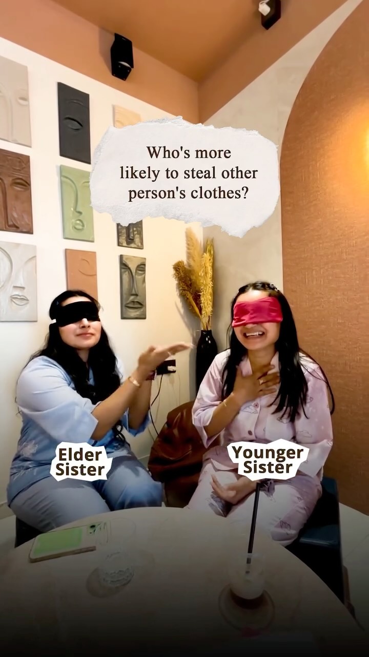 Who runs the house and who thinks they do? 😆 Tag your sister and let her know! #houseofcomfort #WhoIsMoreLikely #SisterDuo #SiblingShenanigans #siblinglove #pjsets #pajamasets #TagYourSister #sisterthings #pyjama #sleepwear #nightsuit #loungewearindia #pajamaparty
