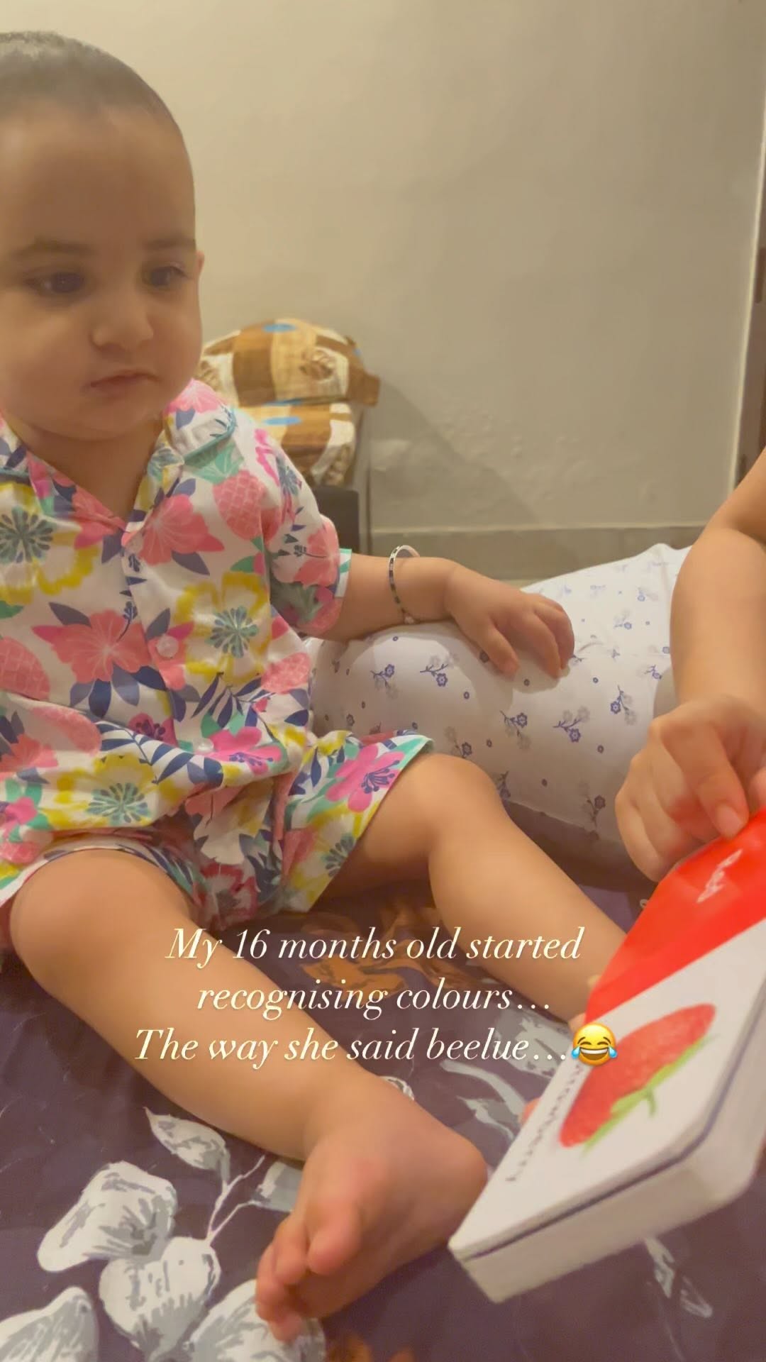 This is one of many things she learnt these days…at this age they grasp things so quickly…I used to repeat words in front of her and the next day she starts blabbering those words…this makes me feel so proud…❤️ . Ps : Loved the way she says blue and orange..😂🫶🏻 . . . #toddlermom #toddleractivities #toddlerlife #proudmommy #cutebabygirl #16monthsold #motherhood