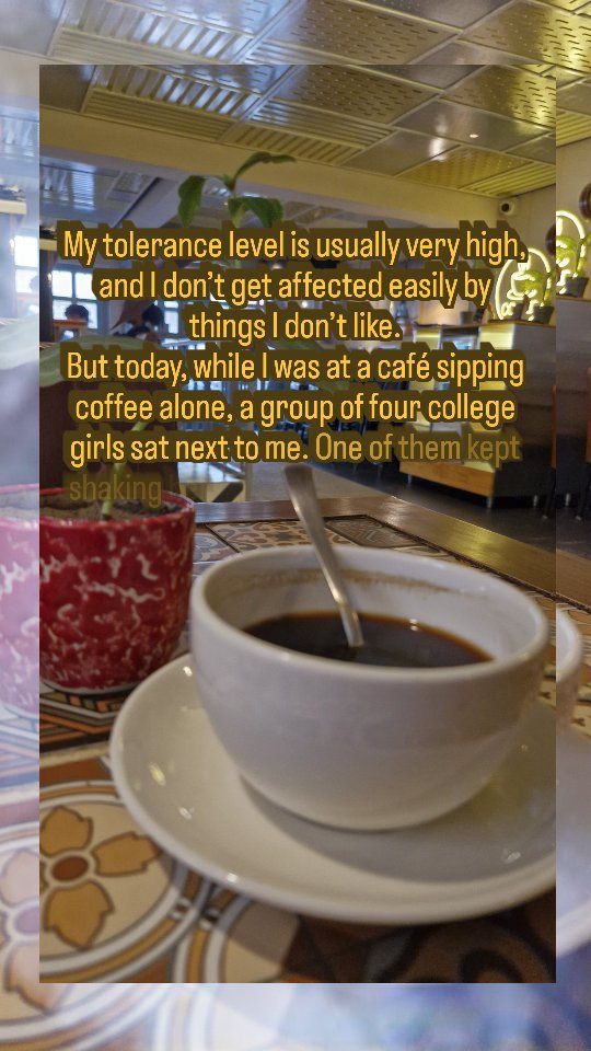 Went to a café for some quiet me-time ☕✨ but the bebasi of not being able to tell the girl next to me to stop shaking 🤯 She was so calm otherwise, but her feet were on a constant run 🏃♀️💨 I think I got tired just watching 🤣🤣 Am I the only one who’d get irritated or you too? #CafeVibes #MeTime #RelatableReels #FunnyReels #CafeChronicles #IRLmoments #CantUnsee #AnnoyingButFunny #ShotOnReel #ViralReels #LifeUnfiltered #DailyVibes #ReelKaroFeelKaro