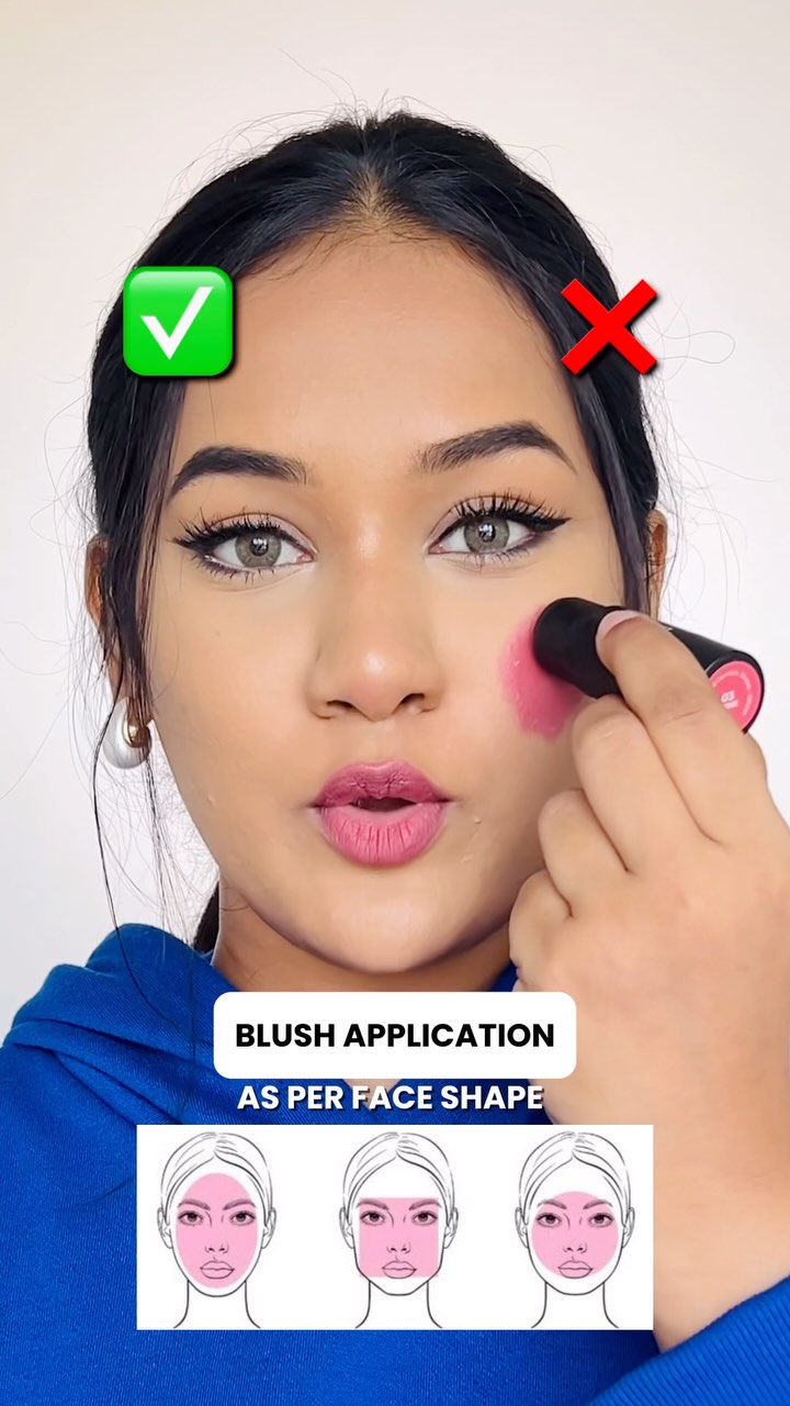 Blush technique as per face shape😍 What is your face shape? @staze9to9 Cheek Me Out Multipurpose Stick #blush #makeup #makeupforbeginners #explorepage #trendingnow #trendingreels #exploremore #viralvideos #makeuphacks #makeupguide