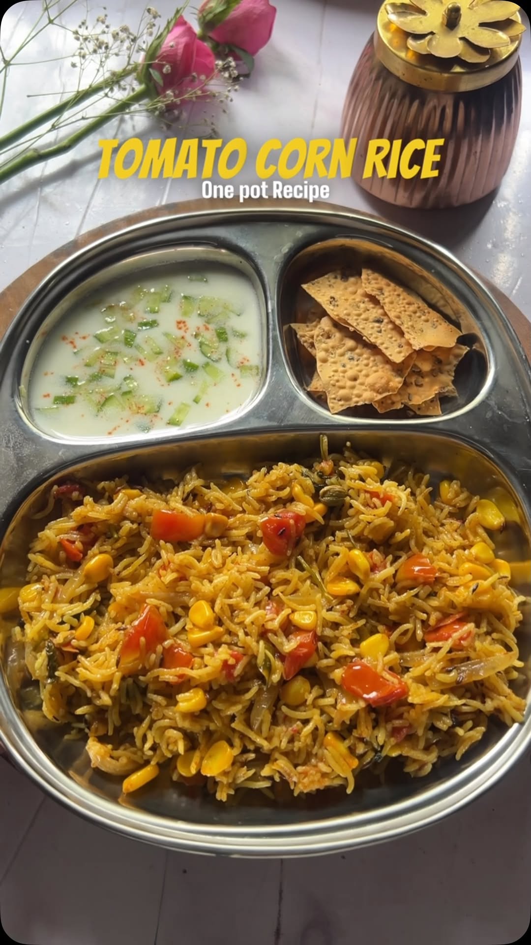 🍅🌽 Tomato Corn Rice – One Pot Comfort Meal! Lazy dinner? Quick lunch? This colourful, masaledaar rice is the answer! Banega in pressure cooker – full flavour, no extra effort! 🫶 You’ll need: Rice, corn, tomatoes, onion, garlic, cumin, haldi, lal mirch, dhaniya-jeera, garam masala, salt, oil, water. Steps: Sauté jeera in oil → Add onion & garlic Add corn + tomatoes → Cook till soft Add rice + masale → Mix well Add water → 1 whistle high, 2 whistles low Natural pressure release → Fluff, garnish, serve! Save, try & tag! 🫶 🔥 craving more food content? Hit FOLLOW → @hungryshruu 📸 Want to be featured? Tag us with #foodtoxic 💖 Save this post for your next foodie adventure! 🚫 No Reposts Without Permission 🚫 #tomatorice #onepotmeal #easyrecipes #quicklunch #desiflavours #ricerecipe #homecooking #hungryshruu #indianfoodlove #vegetarianvibes #noonereatslikeus tomatorice cornrecipes onepotmeal easyrecipes homecooked quicklunch comfortfood vegetarianvibes desiflavours hungryshruu