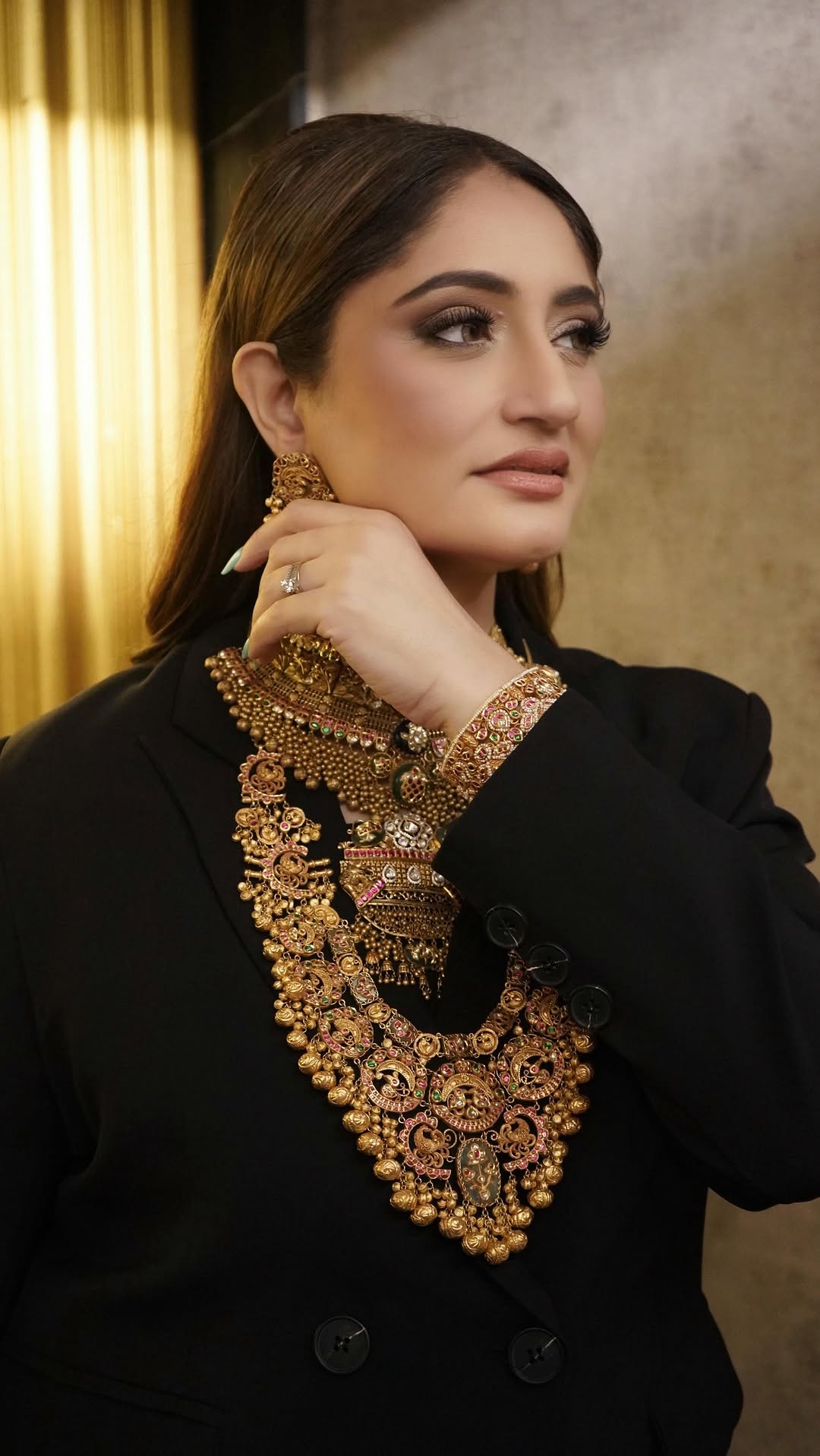 𝐃𝐚𝐲 𝟐 𝐚𝐭 𝐉𝐞𝐰𝐞𝐥𝐥𝐞𝐫𝐲 𝐖𝐨𝐫𝐥𝐝 @jewelleryworld_exhibitions 𝐚𝐧𝐝 𝐭𝐡𝐞 𝐠𝐥𝐚𝐦 𝐤𝐞𝐞𝐩𝐬 𝐞𝐯𝐨𝐥𝐯𝐢𝐧𝐠 ✨ A power blazer set paired with bold temple jewels by @pachchigarandsonsjewellers who says you can’t mix moods? Shoutout to the magic hands behind this look — @makeupbyshrutisaraf💄 🎥 @adnanphotographystudio Edited by @noorkalra555 fusion look, temple jewellery styling, blazer with Indian jewellery, Jewellery World Mumbai, statement fashion, Indian influencer style, contemporary meets tradition, bold Indian fashion, modern ethnic wear, Indian makeup artist, luxury jewellery India, unique jewellery styling, fashion reels India, festive fashion inspiration, day to night look India #JewelleryWorld #Day2Look #FusionStyle #TempleJewellery #PowerDressing #ModernMeetsTradition #Makeup #JewelleryReel #StyleContrast #BoldBeauty #StatementJewels #IndianJewelleryWithATwist