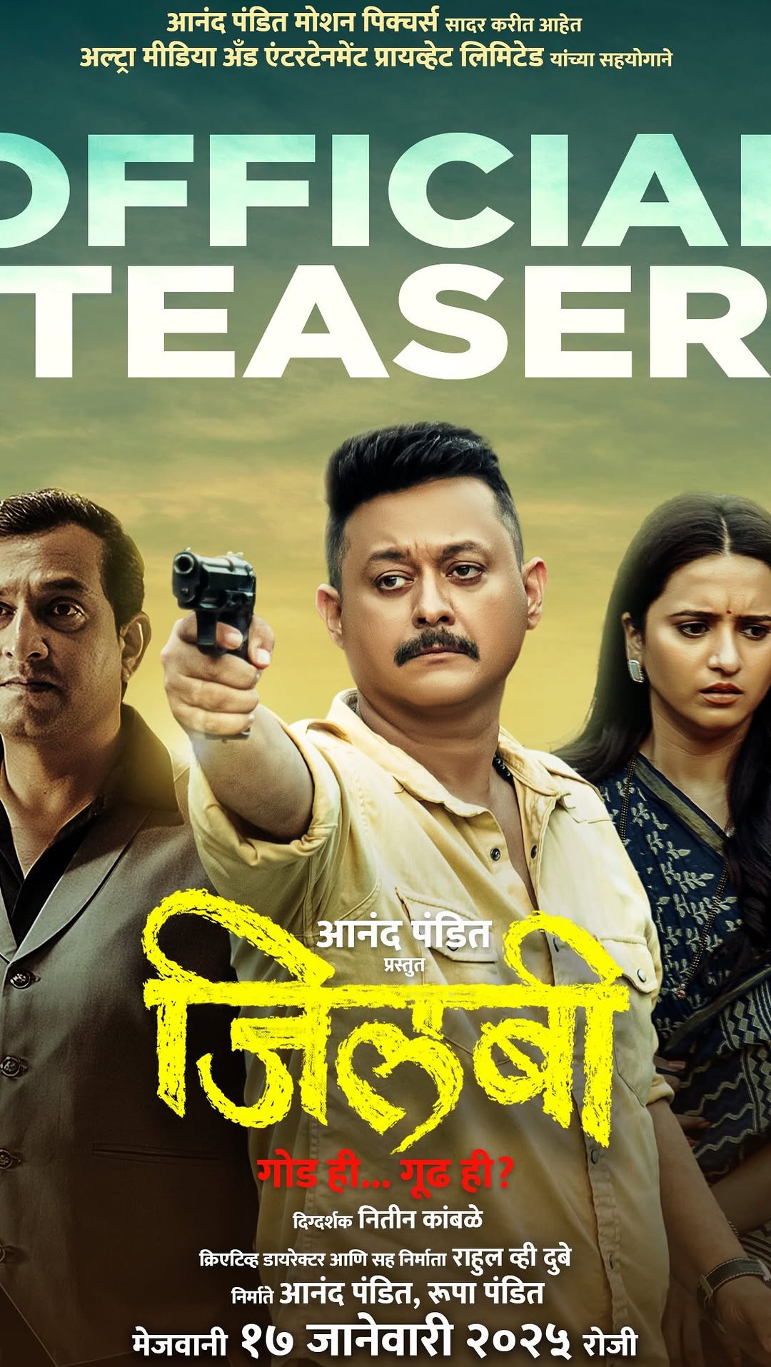 Investigation एकदा सुरू झालं ना की मुळासकट सगळं बाहेर निघेल ... टिझर पहा इथे - Link In Bio 🔗 ‘जिलबी’ १७ जानेवारी २०२५ पासून आपल्या जवळच्या चित्रपटगृहात! #Jilabi #जिलबी #JilabiInCinemas17january #AnandPanditMotionPictures @jilabi_movie @anandpanditmotionpictures and @ultramepl Presents Producers: @anandpandit , @roopa_pandit Director: @nitinkambledirector12 Cast: @swwapnil_joshi , @oakprasad , @iam_shivanisurve , #GaneshYadav, @parnapeace, @pranavraorane_offical , @rajesh.kamble.5458 , @khamkar.pankaj86, @shridiilip, @ohhyessabhi75, #Rushi Deshpande @ashwinichavare_official @priyankabhattacharjeebubly @harsh_dhananjay444 @aavla_supaari Creative Director & Co-Producer: @rahul_v_dubey Associate Director: @manojyerunkar10 Chief asst Director : @c_vishram Story, Screenplay, Dialogues: @passionate_mack Executive Producer: @maheshchabuk Associate Producer : #Dhamendra Rawal Music On : @ultramusicmarathi Background Music: @amarmohile Art Director: @Kaushal_2110 Casting Director : @vivekgautam_0101 Cinematography: @dopgr.utekar.2191 Editor : #SadiqueIqbal Fight Master : @Raj_Shinde1980 Visual Promotions: @katalystcreates @parthsarthiiyer @i_amgaurang @a_m_fonty Costume Designer: @pawaskarsheetal PR: @gargote_ganesh Publicity Design: @lokisstudio Digital Marketing: @ashmikitilekar, @teamsocialtime Distribution : @panorama_studios @chhatwanimurli @darshan_shah1