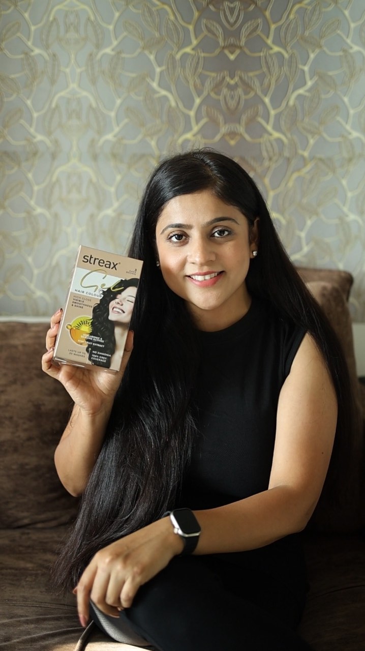 “From dull to dazzling in no time! ✨ Thanks to Streax Gel Hair Colour, my hair is hydrated, shiny, and absolutely flawless! Who’s ready to join the #ShineRevolution? 💖💇♀️ Use code GELCOLOUR on Nykaa for a special discount! 💕 #StreaxGelHairColour #ShineWithConfidence #HairGoals” #ad #collab #paidpartnership