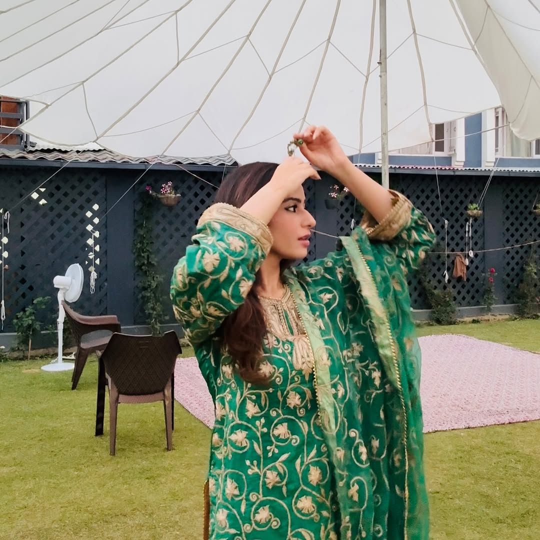 The silk Tilla suit is more than couture it’s a living legacy. For generations, Kashmiri brides and families have cherished Tilla embroidery, its golden threads symbolizing grace, opulence, and tradition. This lush green silk, hand-embroidered with shimmering Tilla motifs, transforms into a canvas of culture reimagined for today from @mahakbukharicouture The dupatta glows with gold detailing, while fluid palazzos bring in a modern silhouette a perfect harmony of heritage craftsmanship and contemporary fashion #tillasuits #tilla #maryamfarhat777 #kashmiriculture #kashmiri