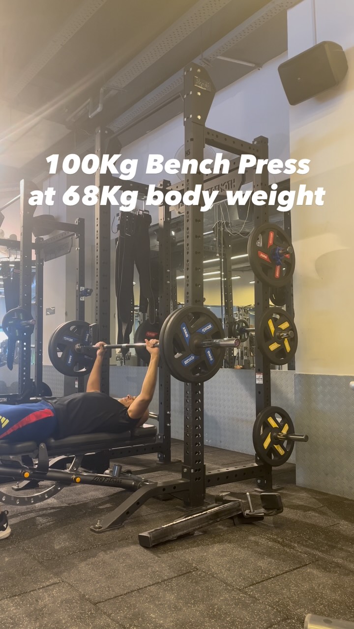 100Kg Bench Press at 68Kg body weight. 120Kg is the target.💪 . . . #barbellbenchpress #chestday #weighttraining #strengthtraining
