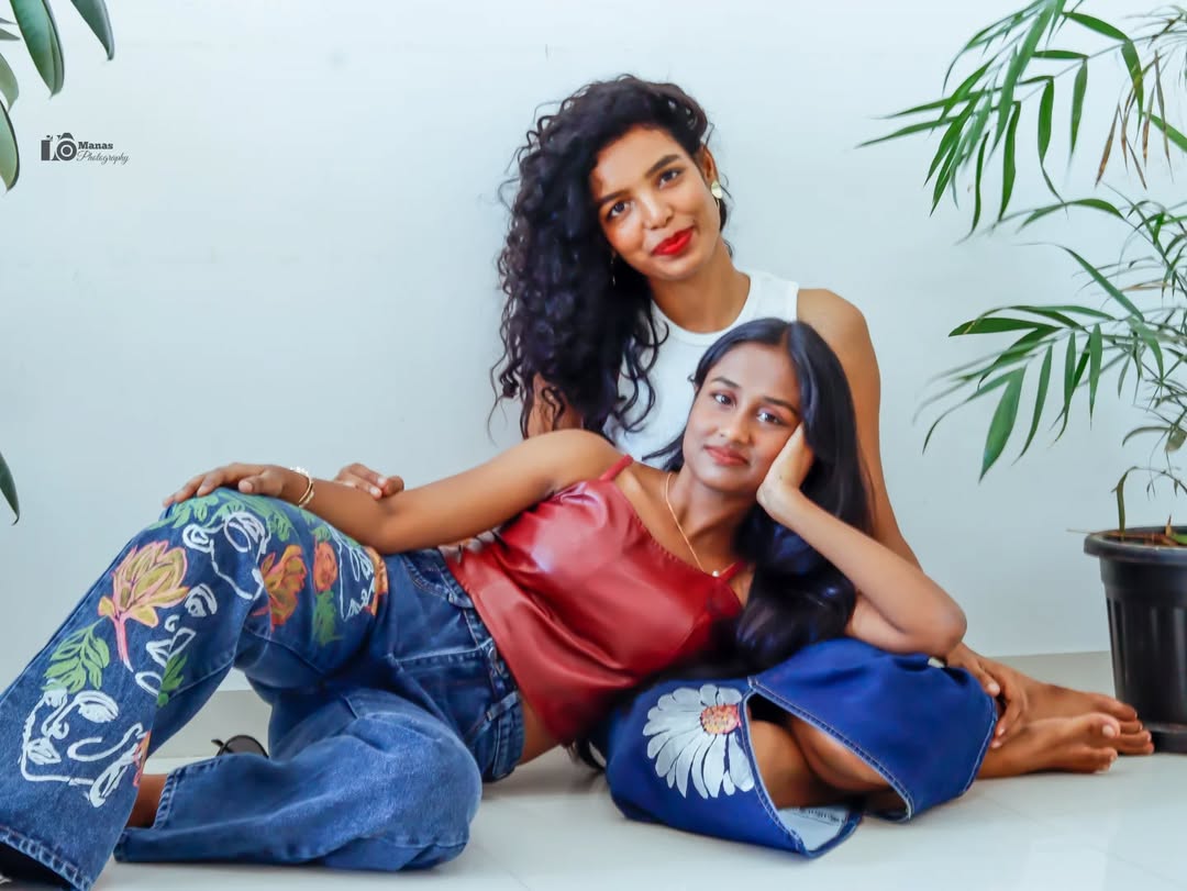 Introduce artistic sophistication to your wardrobe with our Floral Faces Wide-Leg Art Denim jeans....👖 #manasphotography📷 Inframe : @madhumidha_maruthamuthu @s_herinx_ @jeeva_shruthi._ Wearing : @gotamodaofficial Assist : @rai_lakshman #fashionstyle #fashion #denim #pattern #modeling #model #style #graceful