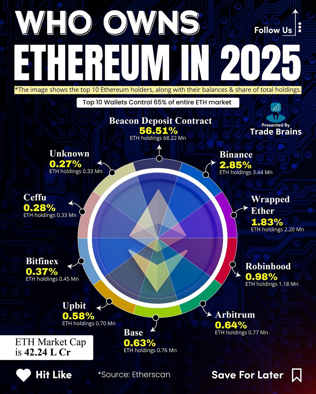 Follow @tradebrainscrypto for more crypto posts! 🔎 Who really owns Ethereum (ETH)? Unlike a company with a single owner, Ethereum is decentralized 🌍 — meaning no one person or organization owns it. It was founded in 2015 by Vitalik Buterin and a group of co-founders including Gavin Wood, Joseph Lubin, Charles Hoskinson & others. 👉 In short: Ethereum isn’t owned — it’s shared. Would you prefer crypto projects to stay decentralized 🌐 or have a strong central leader 👑? Follow @trade.brains Follow @trade.brains #ethereum #bitcoin #crypto #cryptocurrency #solana #binance #whoowns #ethereumnews