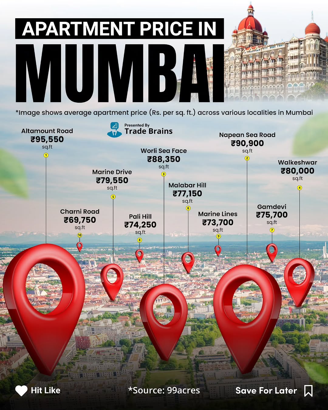 🏙️ Mumbai Real Estate Update 🏢 Apartment prices in Mumbai are witnessing a steady rise, fueled by high demand, limited inventory, and premium location appeal. Altamount Road , Napean Sea Road , Walkeshwar and Marine drive continue to command premium rates, while suburban areas see gradual growth. 🔹 Market Trend: Luxury and mid-segment apartments remain in high demand, with buyers prioritizing amenities, connectivity, and resale value. 🔹 Investment Insight: Despite rising costs, real estate in Mumbai continues to attract investors looking for long-term gains. Do you think buying an apartment in Mumbai now is worth the investment, or is it better to wait for prices to stabilize? Follow @trade.brains Follow @trade.brains #mumbai #realestate #propertyprices #apartament #marinedrive #altamountroad #bombay #99acres #fyp #instaviews #instalikes #house #apartmentliving