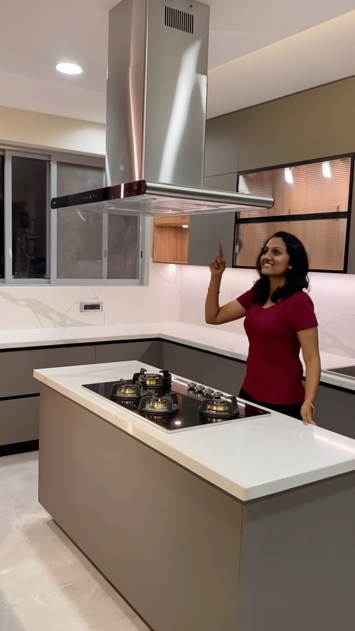 Read caption for more details 👇👇 Step into Ms. Abhijna’s Island Paradise! 🏝️ This breathtaking kitchen is loaded with all the essentials - a stylish quartz sink, convenient servo-drive lift-ups and lift-downs for accessibility, clever pullout mechanisms for spices and corners, a liftup tray for your mixer grinder, tandem boxes, wicker baskets for veggies, sleek roller shutters, a beautifully illuminated tall crockery unit, a mega tall unit with 5 drawers, a sturdy quartz breakfast counter, and a seamlessly integrated appliance unit. If you’re as impressed as we are, hit that follow button for more stunning kitchen designs and decor inspiration! Elevate your space with OAK Kitchen Studio, Bengaluru! 🔥🏡🍽️✨ #kitchendesign #homeinspo #oakkitchenstudio #islandkitchen #dreamkitchen #interiordecor