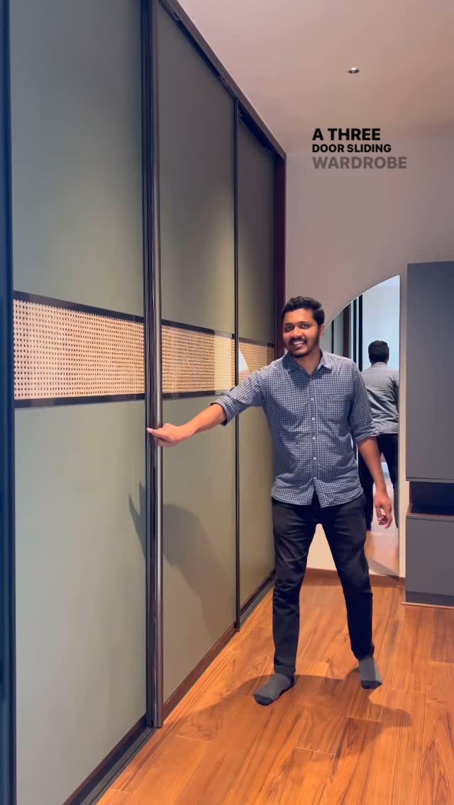 Contact us now for sliding doors😍 Step into the world of chic elegance with our 10ft height wardrobe, boasting three sliding doors adorned in sophisticated Green Laminate panels. The centerpiece of sandwiched cane adds a touch of unique allure to your space. Enjoy the seamless functionality enhanced by the integrated soft open and soft close mechanisms, ensuring smooth operation and longevity. Experience peace of mind with a comprehensive 5-year replacement warranty, a testament to the quality and durability of our design. If these exquisite shutter designs resonate with your style, join us for more inspiring creations that redefine interior aesthetics! 🌿✨ Elevate your space with OAK Kitchen Studio, Bengaluru! 🔥🏡 #wardrobedesign #interiordecor #elegantspaces #homeideas #designinspiration
