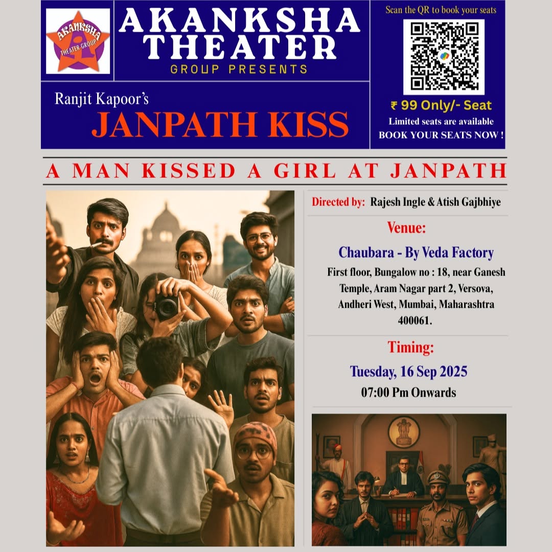 🎭 “Some stories aren’t just told, they are lived… on stage.” Experience the brilliance of Ranjit Kapoor’s Janpath Kiss – a tale woven with wit, emotion, and unforgettable characters. 📍 Venue: Chaubara - By Veda Factory 📅 Date: 16-Sep-2025 🕒 Time: 07:00 Pm ✨ An evening of theatre you’ll never forget. 🎟️ Scan the QR to Book your tickets !