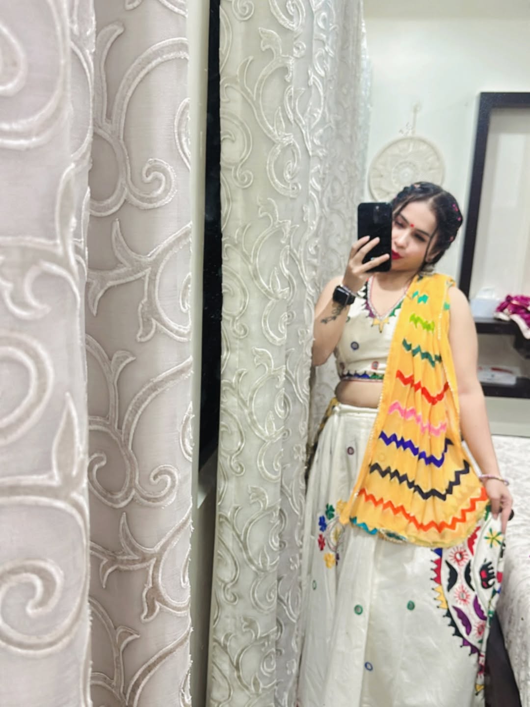 ✨ Dressed up in my Navratri vibes ✨ With divine blessings of Matarani, I embraced purity in white and the joy of colors 🌸 Calm yet enthusiastic, positive yet peaceful — celebrating Navratri beautifully inside out 💫 Here’s to dance, devotion & togetherness 💃🌼 . . . . . . #Navratri2025 #GarbaNights #DivineVibes #NavratriLook #FestiveGlow #PositiveEnergy #BeautifulInsideOut #NavratriOOTD #MataraniBlessings #GarbaReady