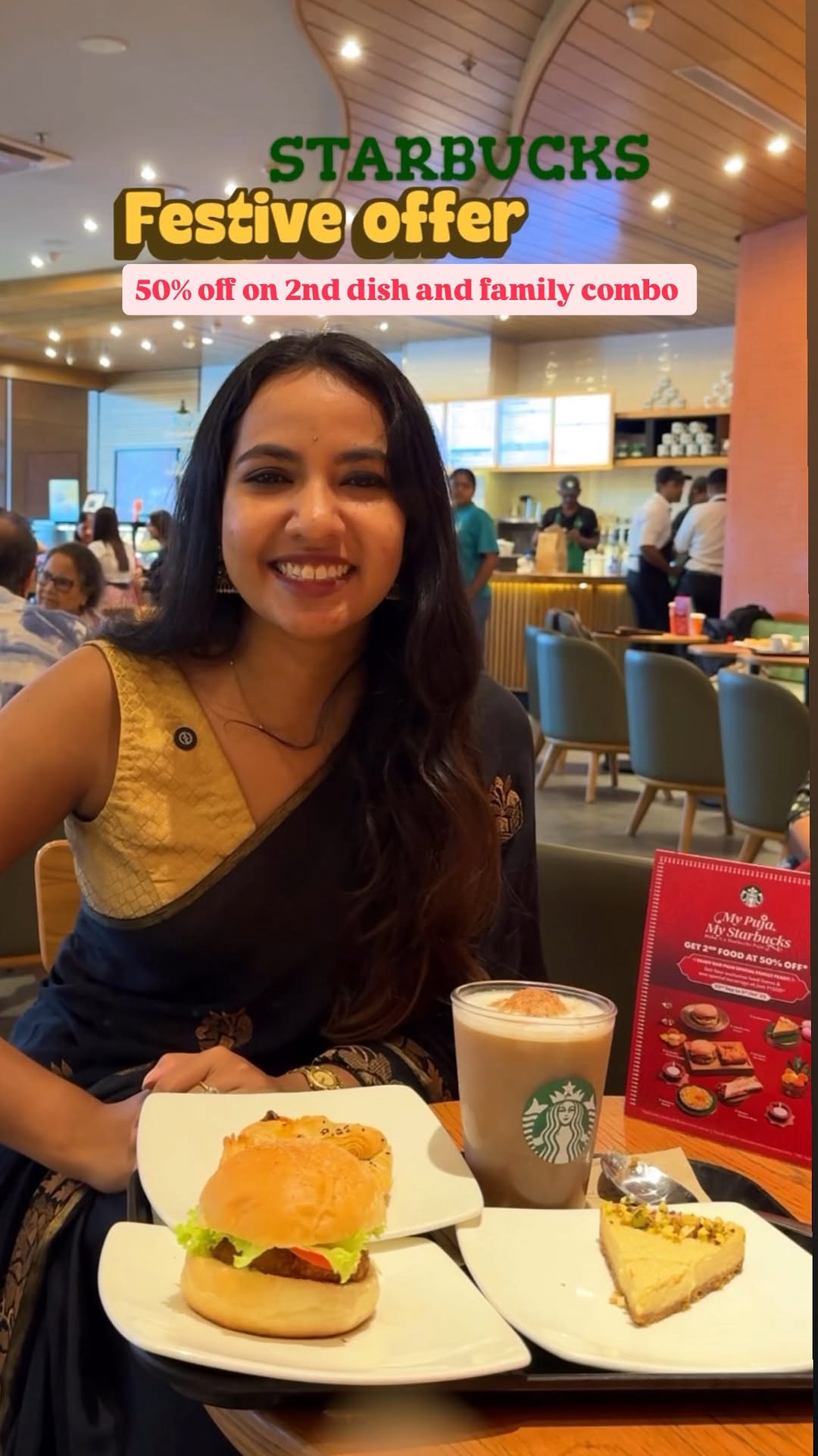 For Odias Durgapuja is more than just a festival. This year, I’m celebrating differently—with a bite of nostalgia and a cup of comfort at Starbucks. From Sept 20th to Oct 5th, indulge in a specially curated festive menu that brings local love to your favourite coffee spot. Dishes like kasundi burger, alooo posto burger, Mihidana brûlée , kalakand pie are the highlights of this festive menu. Festive offers: Buy 1 food item, get the 2nd at 50% OFF 👨👩👧👦 Family Feast Combo – 4 festive food items + 1 beverage for just ₹1500! (*T&C apply) Collab by @firstimpression_in #MypujamyStarbucks