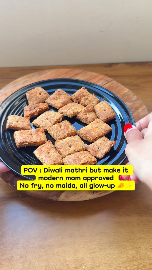 Diwali mathri in got a makeover ! No refine stuff no deep frying and you can’t stop at one ! Check pinned comment for recipe (Diwali healthy snacks , healthy snacks for kids , snacks , home made snacks , snacks for children , healthy crackers , cheese crackers, cheese recipe , healthy snack recipe )