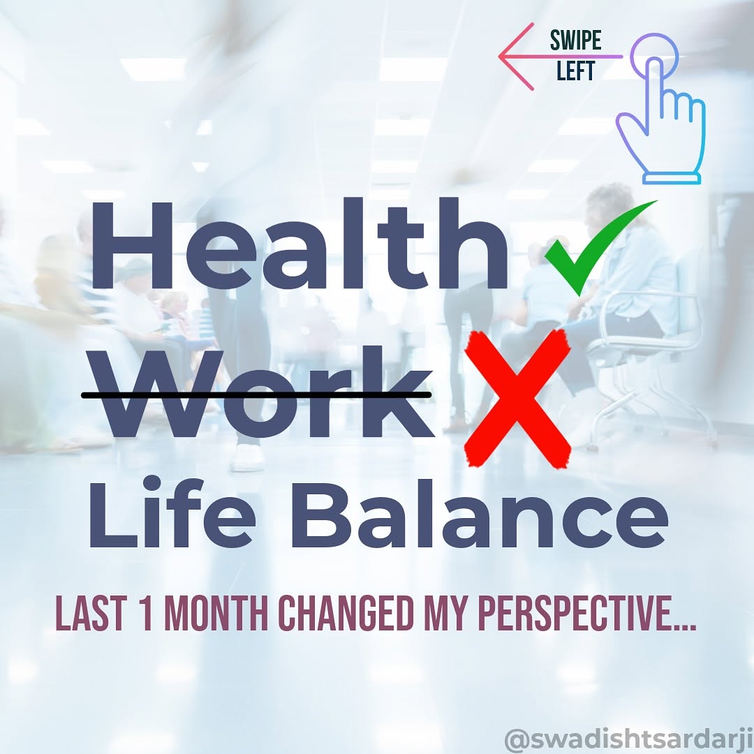 💔 This month taught me the real meaning of Health Life Balance more than Work-Life Balance — and it’s not what you think! In the last 30 days, I have spent more time in hospitals, diagnostic centres, blood banks, and labs than anywhere else. I saw young fathers on hospital beds, corporate leaders praying outside ICUs, kids asking ‘Papa, when will you come home?’ — all reminders that your promotion or salary means nothing if your health fails you. 👉 Swipe through these 10 real stories that changed how I see life, work, money, and time. ✨ If you’re chasing success, remember: you can earn back money, but not your health, not your family’s time, not your peace. ✅ Save this as a reminder. ✅ Share it with someone working 24x7. ✅ And tell me in comments — Are you living to work or working to live? #WorkLifeBalance #HealthOverWork #LifeLessons #FamilyFirst #MindsetShift #PrioritiseHealth #RealStories #SwipeToRead #swadishtsardarji #newjourney #corporatejobs #leadershipskills #jobswitch