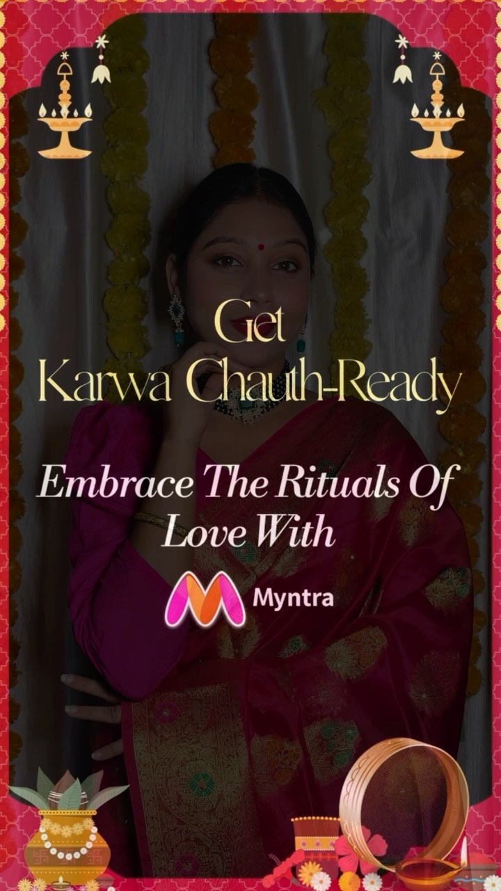 GRWM for Karwa Chauth 🌙 New brides — are you ready to shine on this Karwa Chauth with the perfect glam collection, all thanks to @myntrabeauty! 1. Sugar’s Fwd Primer Stick 2. Maybelline’s Fit Me Foundation shade 128 3. Maybelline Erase Me Concealer 4. Swiss Beauty Dark Brown Eyebrow Pencil 5. Mars cosmetics Jashn-E-Shringar Eyeshadow palette 6. PopSugar Deep pink Blush 01 7. Sugar Fwd stick Royal Rose 07 Highlighter 8. Swiss Beauty Lipliner 9. Sugar Smudge me not Liqui Lipstick Fine Wine 51 On 18th oct, shop from myntra beauty and get a Huda beauty lipstick @ Rs. 1 only. This offer is only on 18th oct #FestivalsOfIndia #KarwaChauth #myntra [ Karwa chauth, Makeup look, bride, new bride, makeup products, skincare, Lipstick, primer, lipliner, highlighter, Foundation, Maybelline, Concealer, Eyeshadow, Eyemakeup, Myntra, Myntra Beauty, Sale]