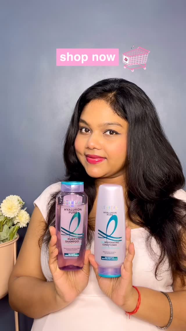 “Dry hair? Meet your hydration hero 💧✨ @lorealparis Hyaluron pure range shampoo and conditioner. One wash and it’s like free from oily scalp, even after 3 days and you get hydrated glass hair in real life. Hyaluron = Hair magic 💙 Get from @myntra @myntrabeauty . Let me know which one are you using?? #haircareroutine #AD #haircare #HyaluronPure #HyaluronPureRange #LorealParisHyaluronPure #LorealParisIndia #FreeYourHair #OilyScalp #SalicylicAcid #HyaluronicAcid #FreshScalp #HydratedHair #MonsoonHaircare #viralproduct