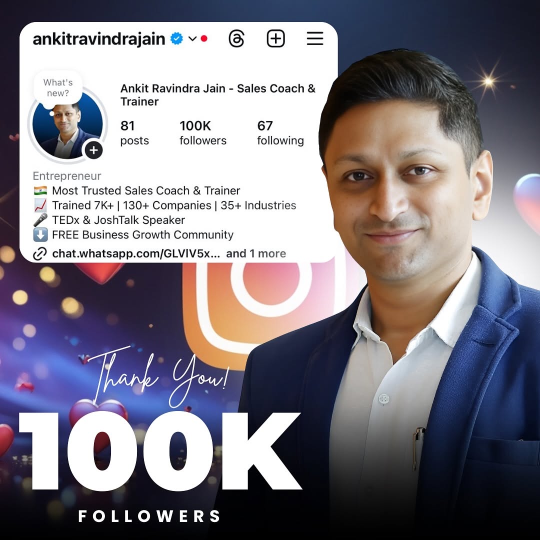 This post was published on 05th January, 2026 by Ankit ravindra on his Instagram handle "@ankitravindrajain (Ankit Ravindra Jain - Sales Coach & Trainer)". Ankit ravindra has total 153.5K followers on Instagram and has a total of 115 post.This post has received 25 Likes which are lower than the average likes that Ankit ravindra gets. Ankit ravindra receives an average engagement rate of 2.5% per post on Instagram. This post has received 0 comments which are lower than the average comments that Ankit ravindra gets. Overall the engagement rate for this post was lower than the average for the profile. #HighTicketSales #SalesCoaching #SalesStrategy #SalesTraining #ClosingDeals has been used frequently in this Post.