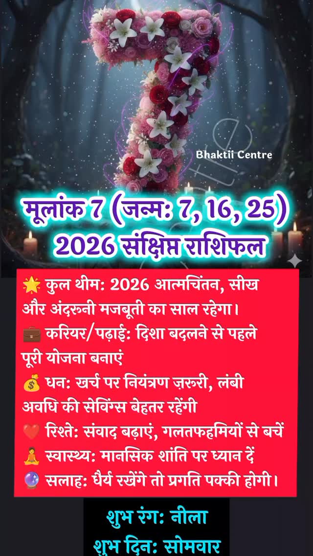 This post was published on 07th January, 2026 by Jagpreet on her Instagram handle "@bhaktiicentre_official (Astro Urjaa)". Jagpreet has total 336.9K followers on Instagram and has a total of 2.3K post.This post has received 146 Likes which are greater than the average likes that Jagpreet gets. Jagpreet receives an average engagement rate of 0.04% per post on Instagram. This post has received 3 comments which are than the average comments that Jagpreet gets. Overall the engagement rate for this post was lower than the average for the profile. #viral #vastushastratips #shorts #astrology #trending has been used frequently in this Post.
