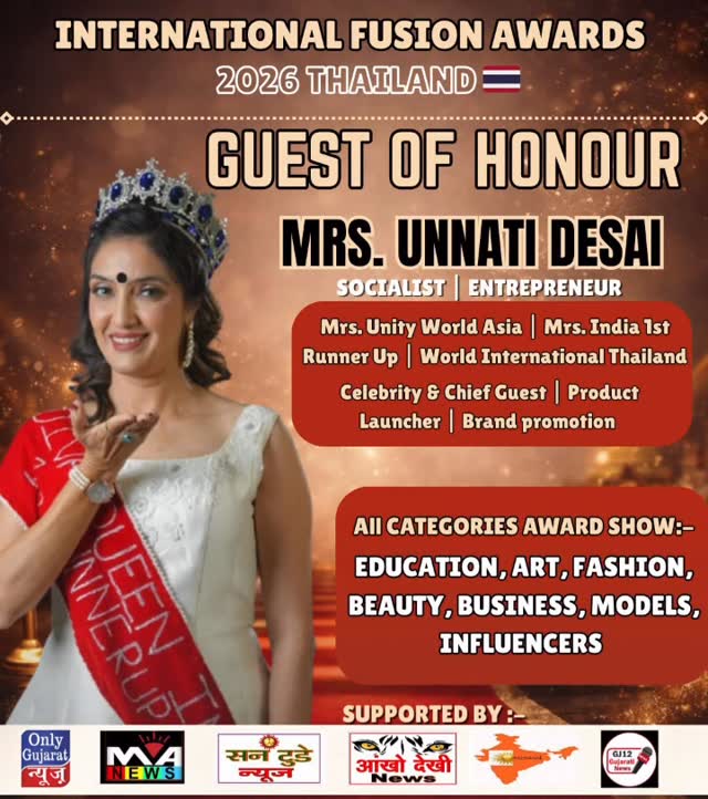 Introducing Unnati Desai, the epitome of success and empowerment. Unnati is not only the proud winner of the prestigious title, Ms. Unity Asia Earth 2023 but also an accomplished entrepreneur, influencer, and dedicated socialist. With her remarkable achievements and unwavering commitment to making a positive impact, As a chief guest, Unnati graces events with her inspiring presence and enriches the experience for attendees. Her captivating speeches and charismatic aura leave a lasting impression, making her an ideal choice for any occasion.