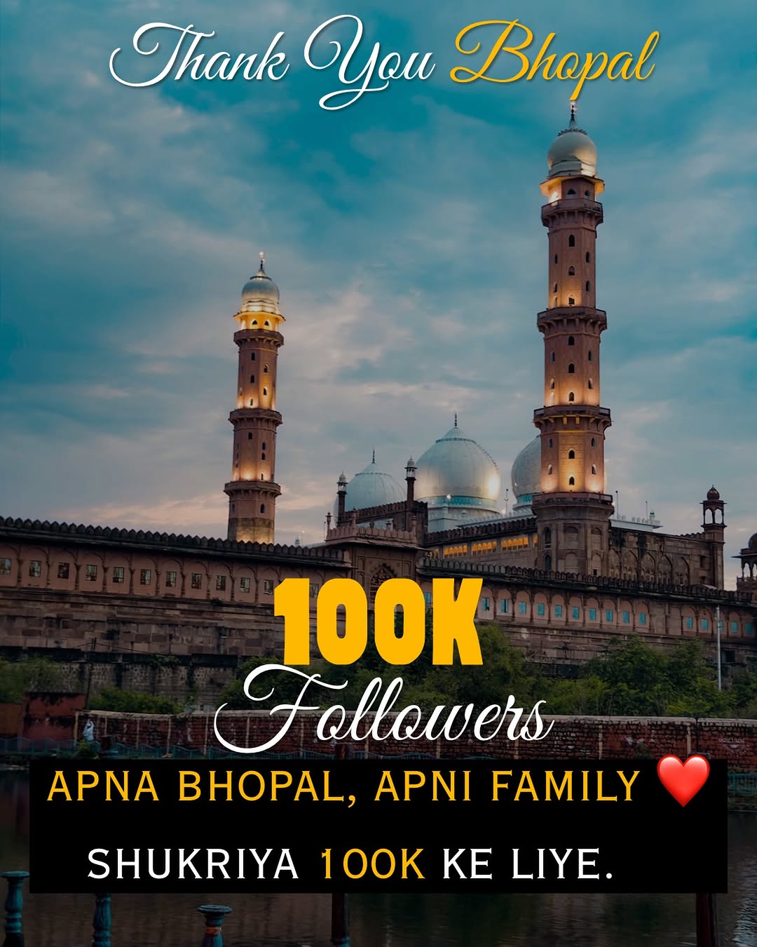 This post was published on 03rd January, 2026 by Muzzammil on his Instagram handle "@_apnabhopal_ (Apna Bhopal)". Muzzammil has total 101.9K followers on Instagram and has a total of 3.9K post.This post has received 133 Likes which are lower than the average likes that Muzzammil gets. Muzzammil receives an average engagement rate of 0.77% per post on Instagram. This post has received 15 comments which are lower than the average comments that Muzzammil gets. Overall the engagement rate for this post was lower than the average for the profile.