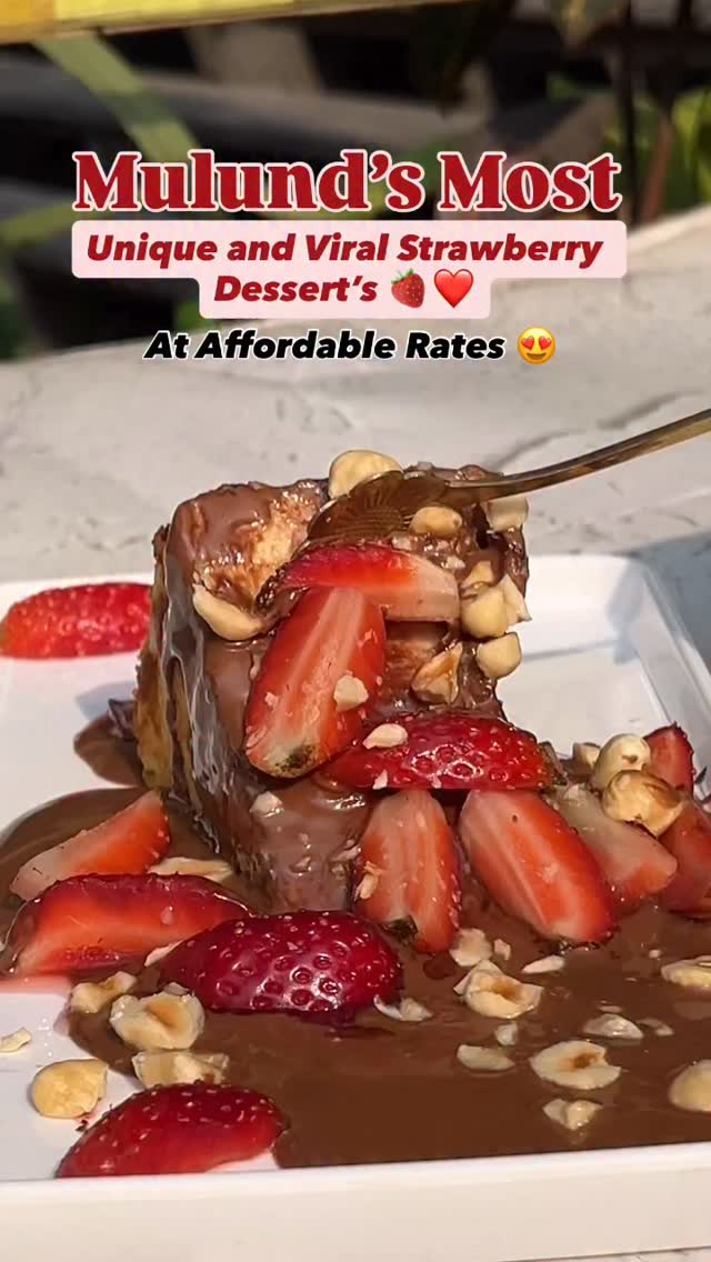 Mulund’s ultimate strawberry heaven 🍓✨ Serving a unique variety of strawberry desserts that every dessert lover must try. @the_food_town . . From the rich and chocolate-layered London Strawberry 🍫🍓 to the crispy and creamy Strawberry Kunafa Delight ✨ . . Don’t miss their one-of-a-kind Strawberry Matka 🏺🍓 and the super cute Strawberry Chocolate Cup 💕 . . Not just desserts — the food here is equally amazing 🍽️ From unique burrata dishes to flavour-packed tacos, sushi, and pizzas 😍 . . All this with a cozy ambience and perfect café vibes in Mulund West ✨🍓 . . Location📍: 2nd Shop, Samriddhi commercial complex, Madan Mohan Malviya Road, near telephone exchange, opp. rally wolff, P&T Staff Colony, Mulund West, Mumbai, Maharashtra 400080 . . (Mulund,Mulund west,Strawberry Dessert,unique desserts,Strawberry Matka,Strawberry Kunaffa,Strawberry chocolate cup,Food,Paneer Burrata,sushi,pizza) . . #mulund #trendingreels #strawberry #unique #mumbaifoodie