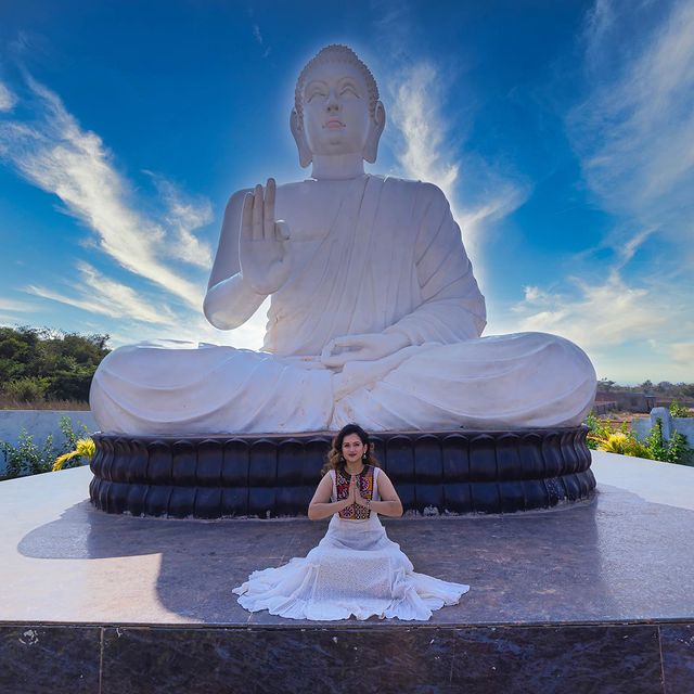 Om Mani Padme Hum which means- The Jewel Is in the Lotus and is a well known and powerful Buddhist Mantra! I learnt this hymn during my visit to Gangtok a couple of years ago and is my go to tune for calming me down. This is to say that within all of us is the lotus flower, it’s just covered up by a lot of mud and muck. Reciting this mantra over and over again, with the right intention, is believed to get rid of the mud and muck until we are as sparkling, pure, compassionate and wise as the lotus flower itself. May this year be the best one yet in all our lives ♥️ Wearing @aarujain19 Shot by @radhaimages Makeup by @vimalareddymakeovers For @swathi_promoters_realestate #buddha #hyderabad #telangana #kurnool #realestate #properties #land #buddhastatue #peace #hyderabadi #lifestyleinfluencer #lifestyleblogger #tirupati #2022 #newyear #natural #andhra #photography #model #influencer #makeup #indianinfluencer #indianmodel #indian #villas #luxury